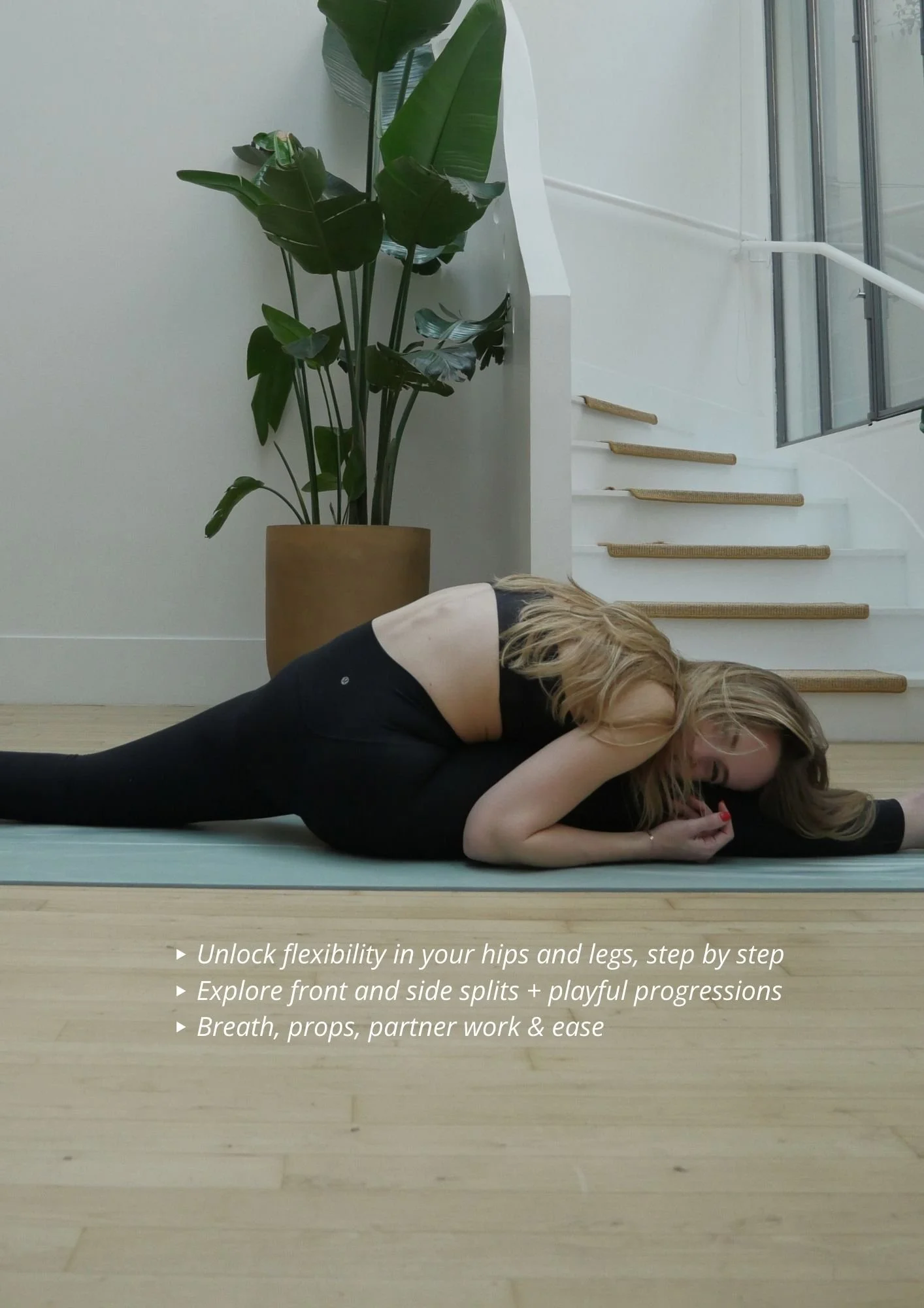 The aim of this workshop isn’t to force you into the splits in one day. Instead, we’ll create a pathway towards deeper leg flexibility in a way that supports your body. And if getting your hips a little closer to the floor is something you’re working toward, we’ll explore that too 😉.
